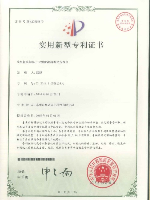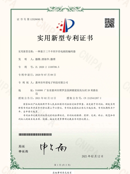 一种基于三个不同半径电刷的编码器-实用新型专利证书(签章)